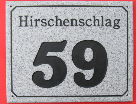 Hausnummer mit Gravur. TiefgravurCorian Granit Design HN 28 x 20 cm( Category: Granit Design Hausnummer);