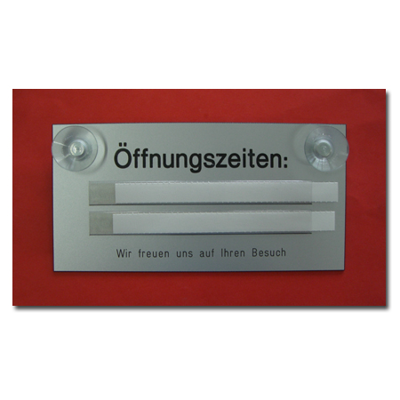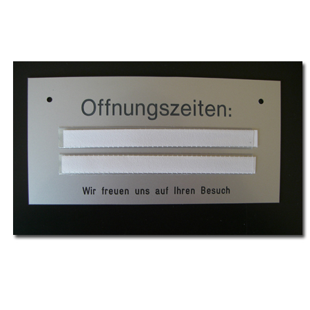 - Standart Text auf der Vorderseite: Öffnungszeiten - Wir freuen uns auf Ihren Besuch (siehe Bilder)