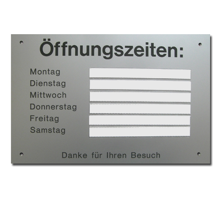 - Standard Text auf der Vorderseite: Öffnungszeiten (siehe Bild)