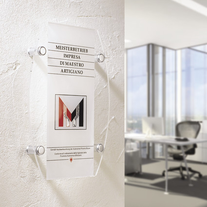 und mit seitlicher Madschraube im Halter gegen Manipulation sichern. Für Schilder, platten, Paneele, und Borde mittlerer Stärke.