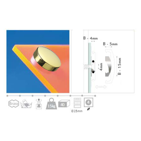 Material: Messing veredelt. Wandabstand: 0mm. Schildstärke: frei. Ø15mm.