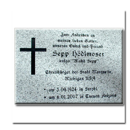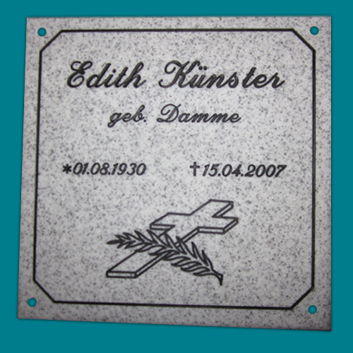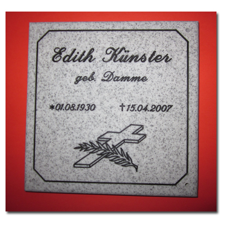 - Hinweis: auch im Granit Design ist jede Gestaltung möglich. Ebenso fertigen wir Firmenschilder, Trauerschilder, Hinweisschilder udgl. aus diesem Werkstoff, ganz nach Ihren Wünschen.