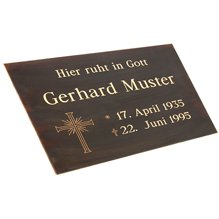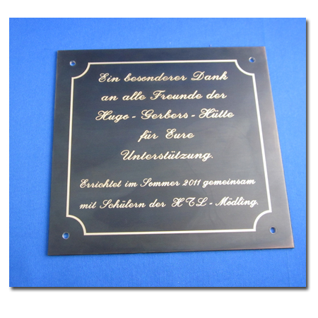 für den Innen- und Außenbereich. Gravur und Rahmen messingfärbig