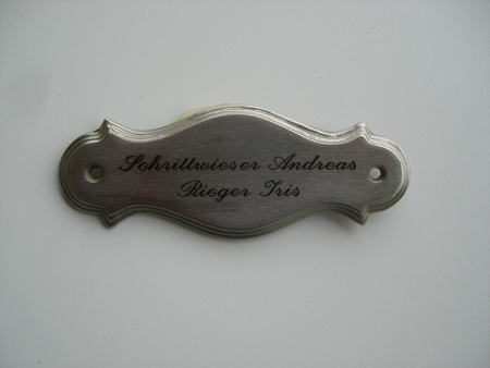 - Messing Schild nickelmatt, vorwiegend für den Innenbereich