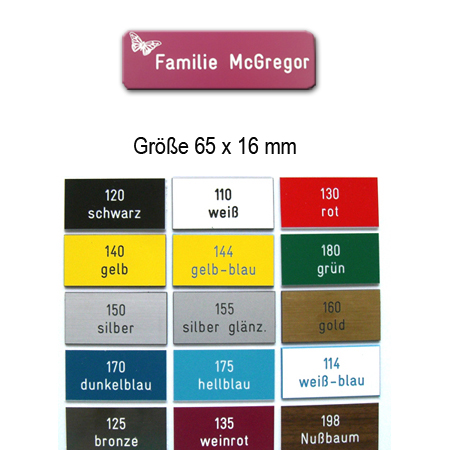- Schriftfarbe: ergibt sich aus dem ausgesuchtem Lagerdekor